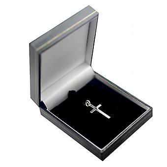 Please be aware before ordering: This item is dispatched from the United Kingdom. If you are ordering for delivery outside of the UK, please note that your order may be subject to import duties and taxes, which are levied once the goods reach the country of destination. Any such charges levied in relation to customs clearance must be paid by you (the receiver/importer). It is accepted by you that British Jewellery Workshops has no control over additional charges in relation to customs clearance. British Jewellery Workshops recommend that you check with your local customs officials or post office for more information regarding importation taxes/duties that may be applicable to your online order. You will be the importer of record and responsible for any import VAT and duty that needs to be paid. In addition, any charges for import clearance will be paid by you, the customer. Sterling silver 25x15mm diamond cut four pointed star solid block cross. Handmade in Birmingham from 2.5 mm by 1.5 mm rectangular wire, the back and sides are also plain highly polished. Made and hand polished in our Birmingham factory and comes to you carefully prepared in a black leatherette gift box.