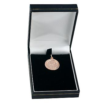 Please be aware before ordering: This item is dispatched from the United Kingdom. If you are ordering for delivery outside of the UK, please note that your order may be subject to import duties and taxes, which are levied once the goods reach the country of destination. Any such charges levied in relation to customs clearance must be paid by you (the receiver/importer). It is accepted by you that British Jewellery Workshops has no control over additional charges in relation to customs clearance. British Jewellery Workshops recommend that you check with your local customs officials or post office for more information regarding importation taxes/duties that may be applicable to your online order. You will be the importer of record and responsible for any import VAT and duty that needs to be paid. In addition, any charges for import clearance will be paid by you, the customer. 9ct rose gold round St Christopher which is stamped from 1 mm thick sheet. The reverse is plain and suitable for engraving. Made in Birmingham, hand polished it comes to you carefully prepared in a black leatherette gift box.